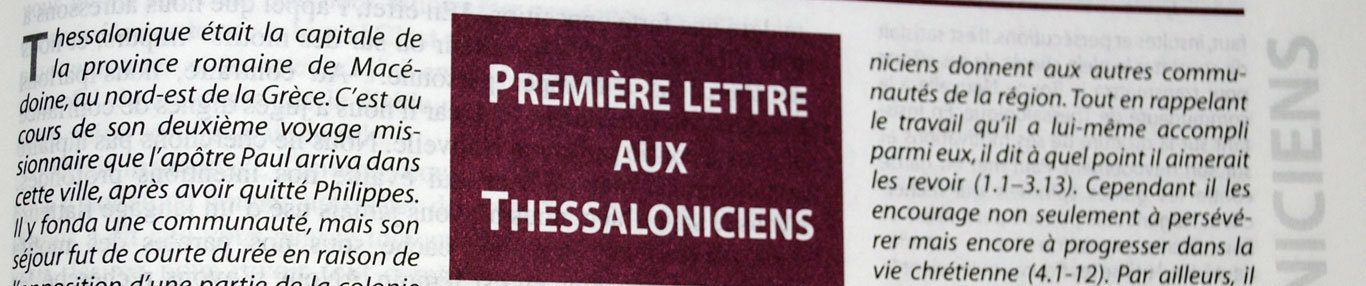 Chapitre 1 1 Paul, et Silvain, et Timothée, à l'Église des Thessaloniciens, en Dieu le Père, et en notre Seigneur Jésus-Christ. La grâce et la paix vous soient données de la part de Dieu notre Père, et du Seigneur Jésus-Christ.2 Nous rendons toujours grâces à Dieu pour vous tous, faisant mention de vous dans nos prières;3 Nous souvenant sans cesse, devant Dieu notre Père, des œuvres de votre foi, des travaux de votre charité, et de la fermeté de votre espérance, en notre Seigneur Jésus-Christ;4 Sachant, frères bien-aimés de Dieu, votre élection.5 Car notre Évangile n'a pas consisté pour vous en paroles seulement, mais il a été accompagné de puissance, et de l'Esprit Saint, et d'une abondante efficacité, selon ce que nous avons été parmi vous et pour vous, comme vous le savez.6 Et vous avez été nos imitateurs et ceux du Seigneur, ayant reçu la parole avec la joie du Saint-Esprit, au milieu de beaucoup d'afflictions;7 De sorte que vous avez été des modèles pour tous ceux qui ont cru, dans la Macédoine et dans l'Achaïe.8 Car, non seulement la parole du Seigneur a retenti de chez vous dans la Macédoine et dans l'Achaïe, mais la foi que vous avez en Dieu a été connue en tous lieux, de sorte que nous n'avons pas besoin d'en rien dire.9 Car ils racontent eux-mêmes quel accès nous avons eu auprès de vous, et comment vous vous êtes convertis des idoles à Dieu, pour servir le Dieu vivant et vrai,10 Et pour attendre des cieux son Fils, qu'il a ressuscité des morts, Jésus, qui nous délivre de la colère à venir.